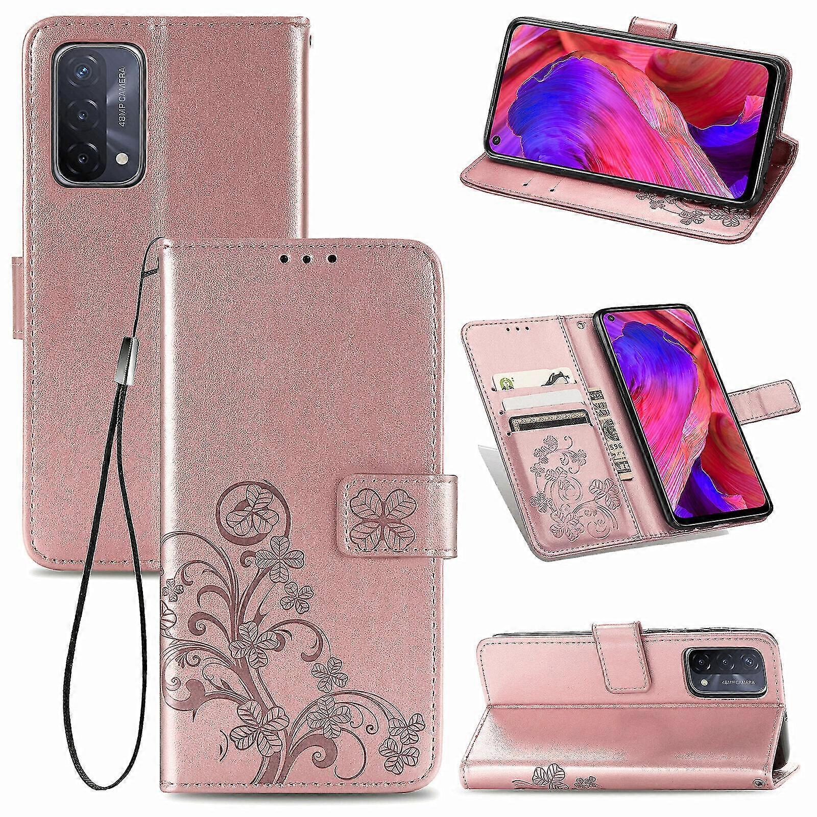 Compatible with Oppo A54 5g Cover Wallet Clover Embossed Protective Leather Phone Case - Pink