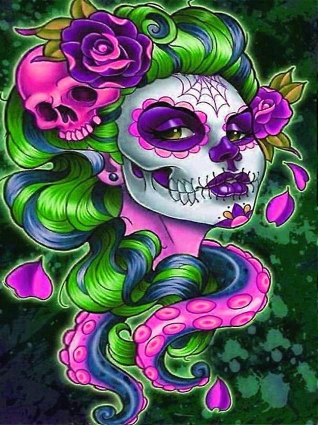 DWW-30 x 40 cm, Halloween Skeleton Girl Diamond Painting Diamond Embroidery Painting5D Canvas Painting for Children and Adults, Rhinestone Puzzle Set,
