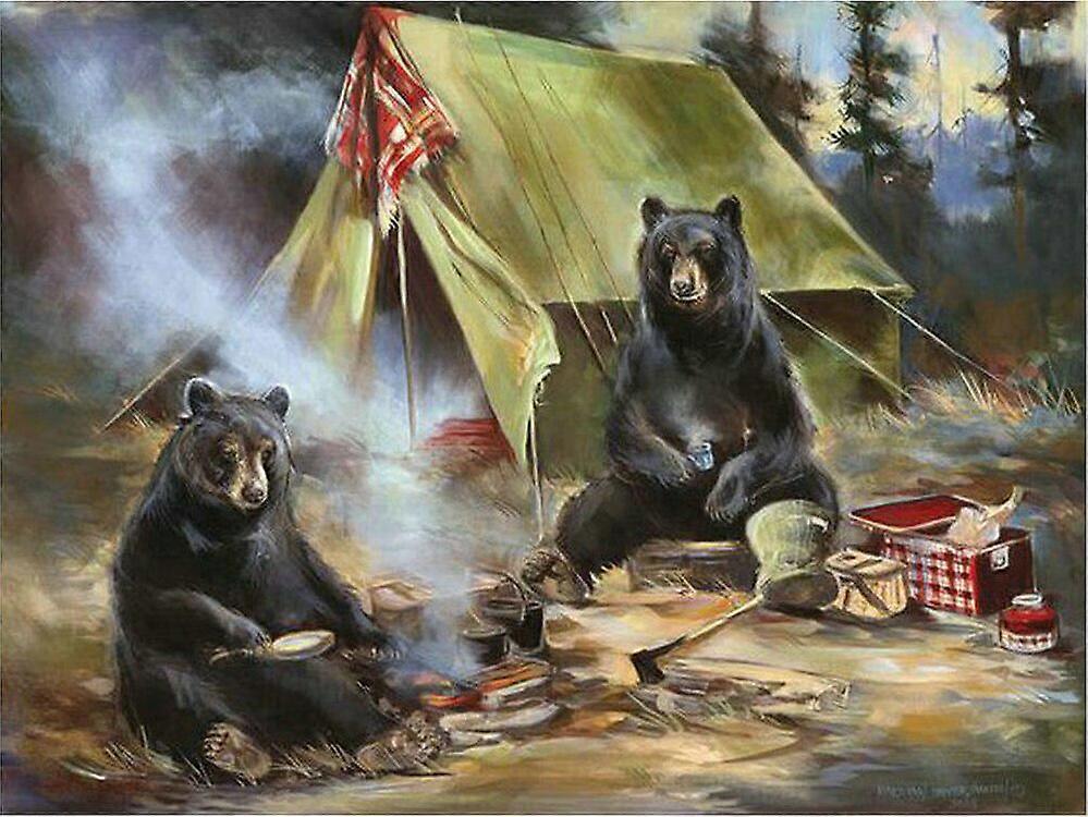 Dww-30 x 40 cm, Camping Bear Diamond Painting Diamond Embroidery Painting5D Canvas Painting for Children and Adults, Rhinestone Puzzle Set, Drawing Wa