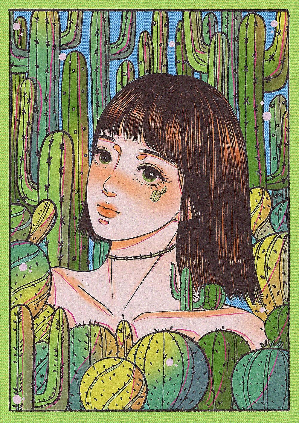 Dww-30 x 40 cm, Cactus Girl Diamond Painting Diamond Embroidery Painting5D Canvas Painting for Children and Adults, Rhinestone Puzzle Set, Drawing Wal