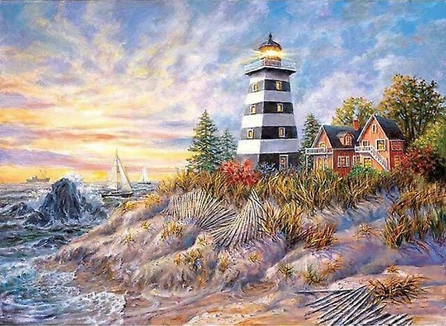 DWW-30 x 40 cm, Seaside Lighting Tower, Diamond Painting, Diamond Embroidery Painting5D Canvas Painting for Children and Adults, Rhinestone Puzzle Set