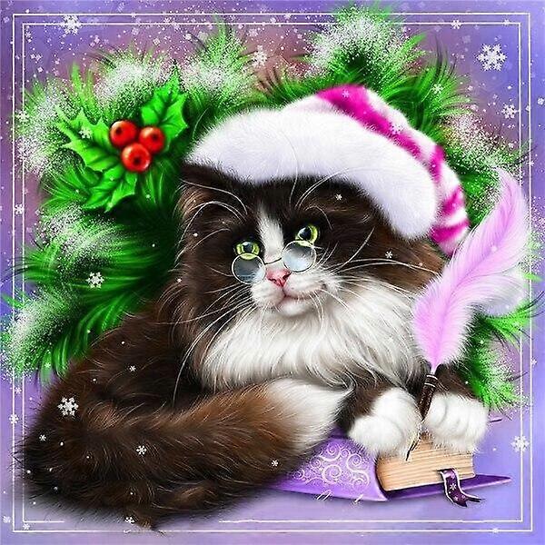 DWW-30 x 40 cm, Cat with Christmas Hat Diamond Painting Diamond Embroidery Painting5D Canvas Painting for Children and Adults, Rhinestone Puzzle Set,