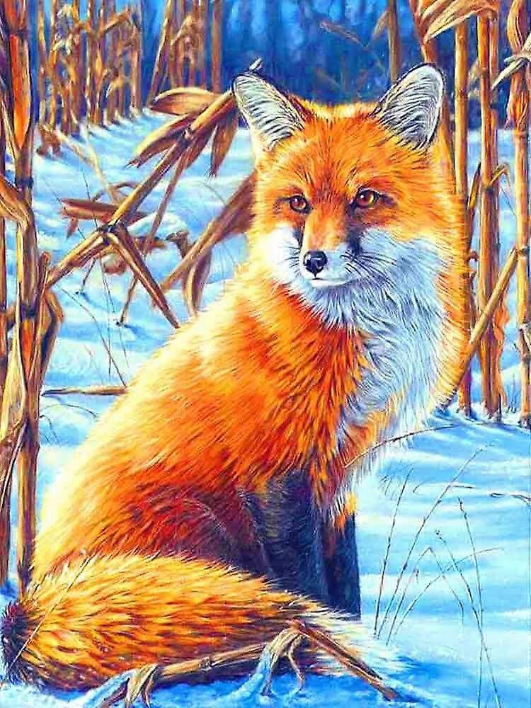 Dww-30 x 40 cm, Fox in the Snow Diamond Painting Diamond Embroidery Painting5D Canvas Painting for Children and Adults, Rhinestone Puzzle Set, Drawing