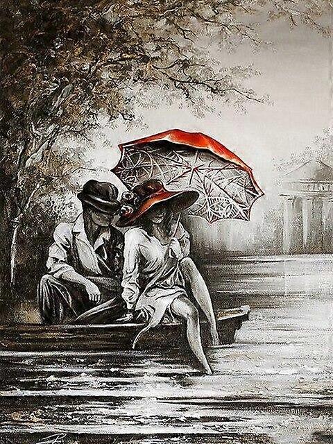 Dww-30 x 40 cm, Woman with Red Umbrella Diamond Painting Diamond Embroidery Painting5D Canvas Painting for Children and Adults, Rhinestone Puzzle Set,
