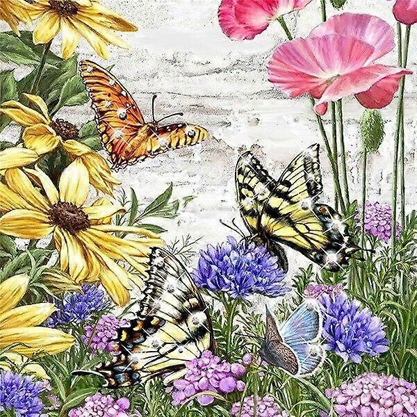 DWW-30 x 40 cm, Butterfly in Flowers Diamond Painting Diamond Embroidery Painting5D Canvas Painting for Children and Adults, Rhinestone Puzzle Set, Dr