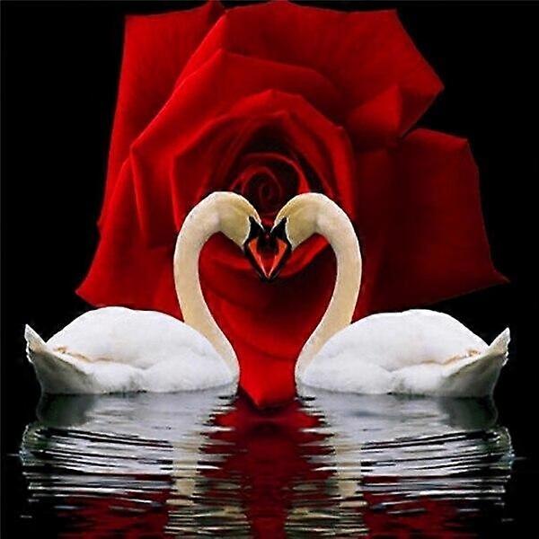 Dww-30 x 40 cm, Pink and Red Swan Diamond Painting Embroidery Diamond Painting5D Canvas Painting for Children and Adults, Rhinestone Puzzle Set, Drawi