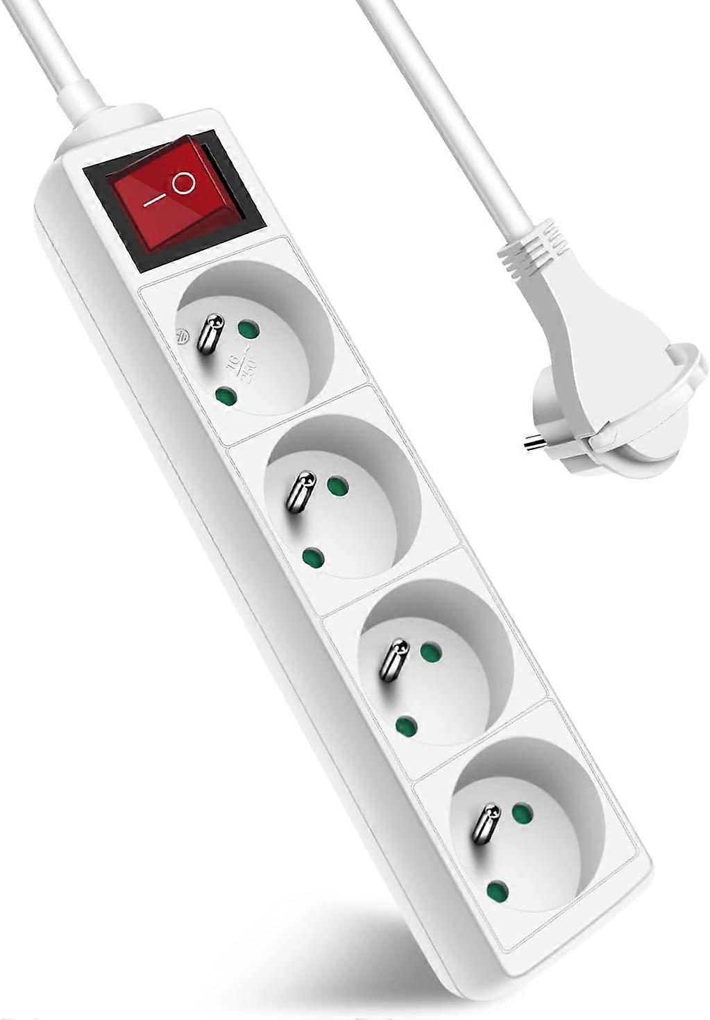 Dww-4-Outlet Power Strip with Switch, Flat Plug, 4-Outlet Block, 1.5m Extension Cord, 230V with Child Safety Lock