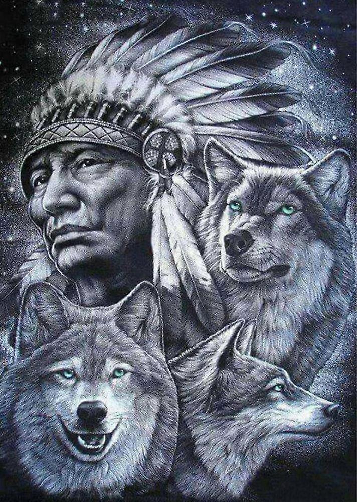 DWW-30 x 40 cm, Tribal Men and Wolves Diamond Painting Embroidery Diamond Painting5D Canvas Painting for Children and Adults, Rhinestone Puzzle Set, D