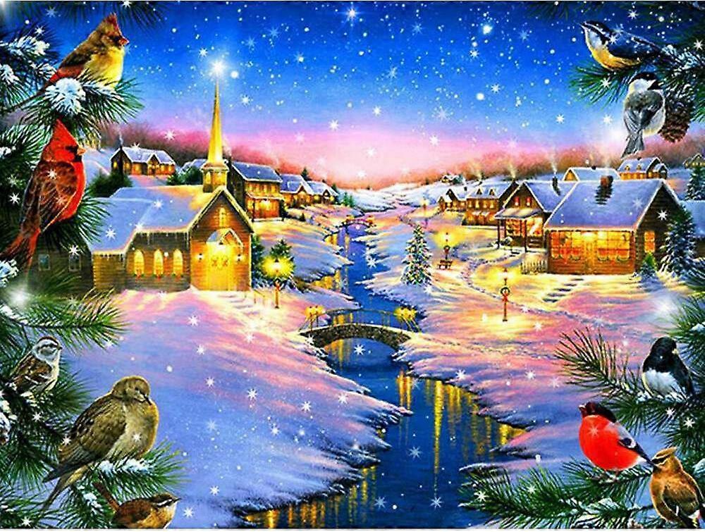 DWW-30 x 40 cm, Snow Scene near Christmas Stream Diamond Painting Embroidery Diamond Painting5D Canvas Painting for Children and Adults, Rhinestone Pu