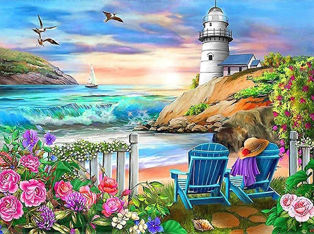 DWW-30 x 40 cm, Seaside Signal Tower Diamond Painting Diamond Embroidery Painting5D Canvas Painting for Children and Adults, Rhinestone Puzzle Set, Dr