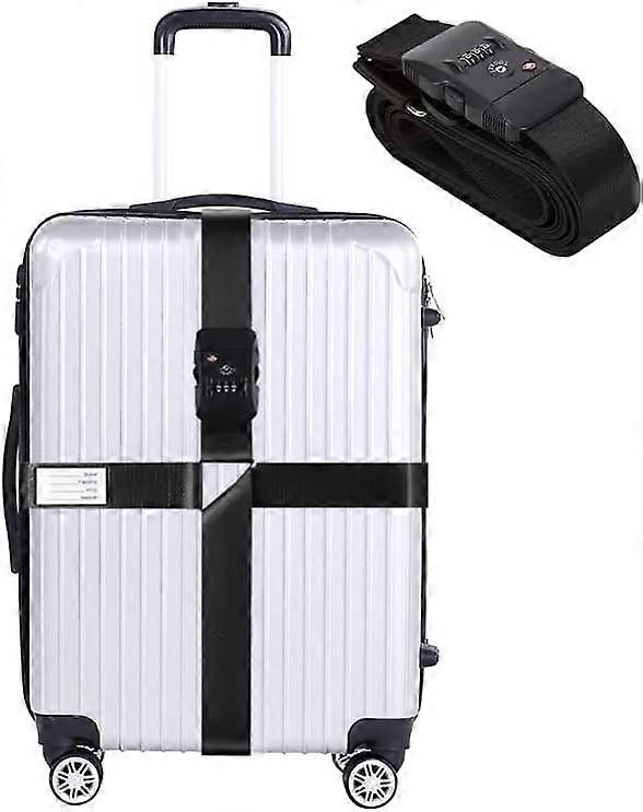 Dww Luggage Strap with Lock (Black) Luggage Tag Adjustable Cross Luggage Strap with Luggage Lock Customs Lock Travel Accessory