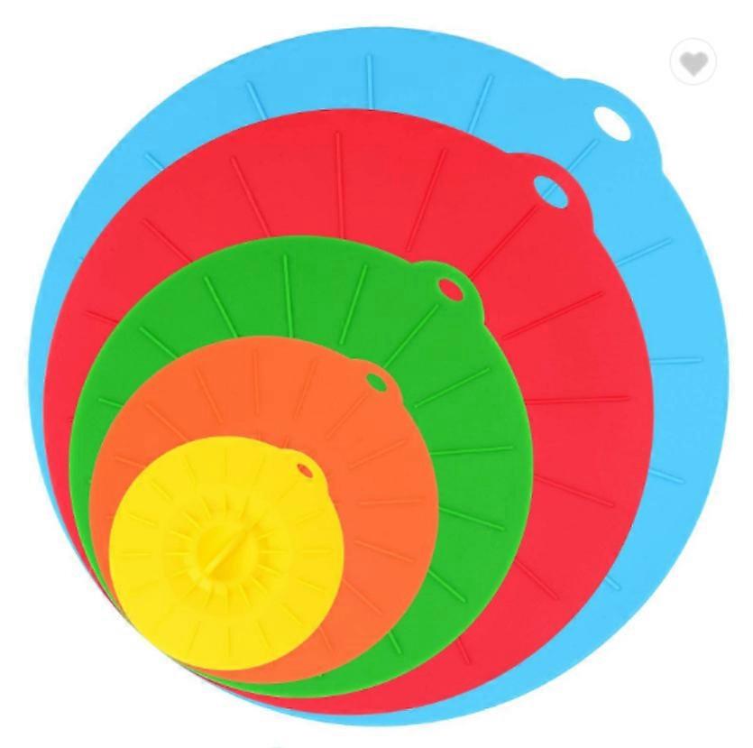 Dww Silicone Suction Lids - 5 Sizes, Reusable Dustproof and Heat Resistant Silicone Lids, Fit All Round Containers with Flat Sides, Perfect for Frying