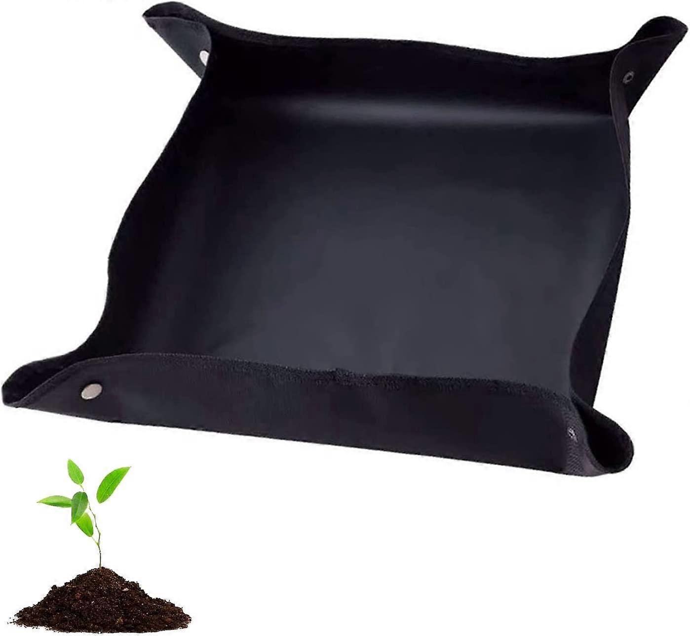 Material - This square plant mat is made of thickened, waterproof PE. Don't worry about your floor getting dirty when transplanting plants.Unique button design - There are two copper loops on each of the four corners. When fastened, the four corners can be easily secured to prevent water and soil from leaking out, keeping the floor clean and tidy.Easy to clean and store - The waterproof material makes it very easy to clean. When you have finished using it, you can wash it under running water and then hang it to dry. It can also be folded small for easy storage.practical and reusable.Size: 50 x 50 cm. Washing instructions: Hand wash, hang to dry, do not expose to sunlight. Suitable for potted indoor plants, it can meet your various gardening needs.Multifunctional - The square pot mat effectively prevents dirt from accumulating and is suitable for repotting, watering, loosening soil, and transplanting succulents, bonsai trees, and other houseplants. It is also a good aid forchildren to do crafts at home.