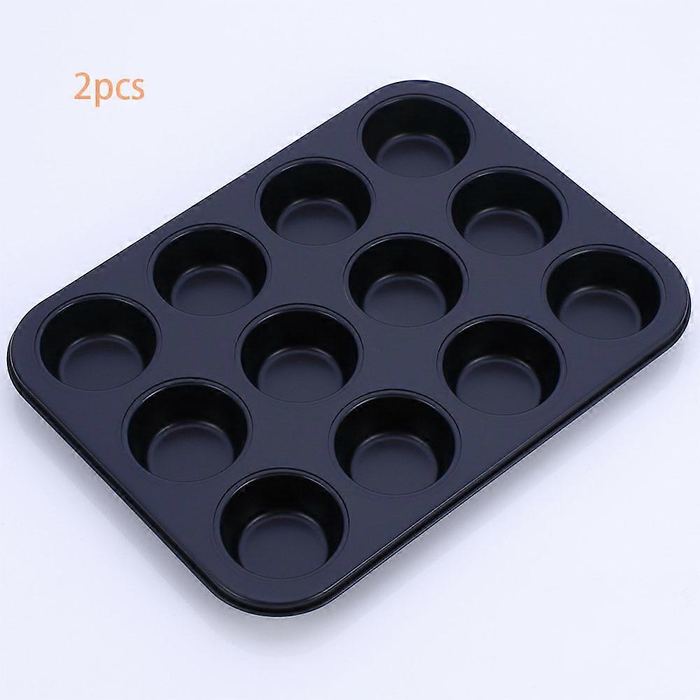 Dww-2pcs-24.6 x 18.5 x 2 cm (Gray)-SUPER KITCHEN Large Muffin Pan 12 Silicone Cups Non-Stick Muffin Tray Baking Mold for Muffins, Cupcakes, Brownies,