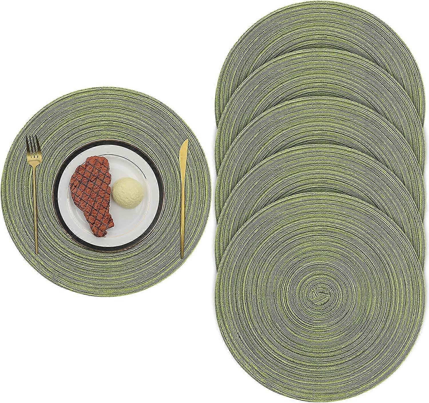 Dww-Round Woven Placemats 6 x 38 cm (Green) Heat-insulating and non-slip woven cotton placemats. Washable placemats for family gatherings, weddings, r