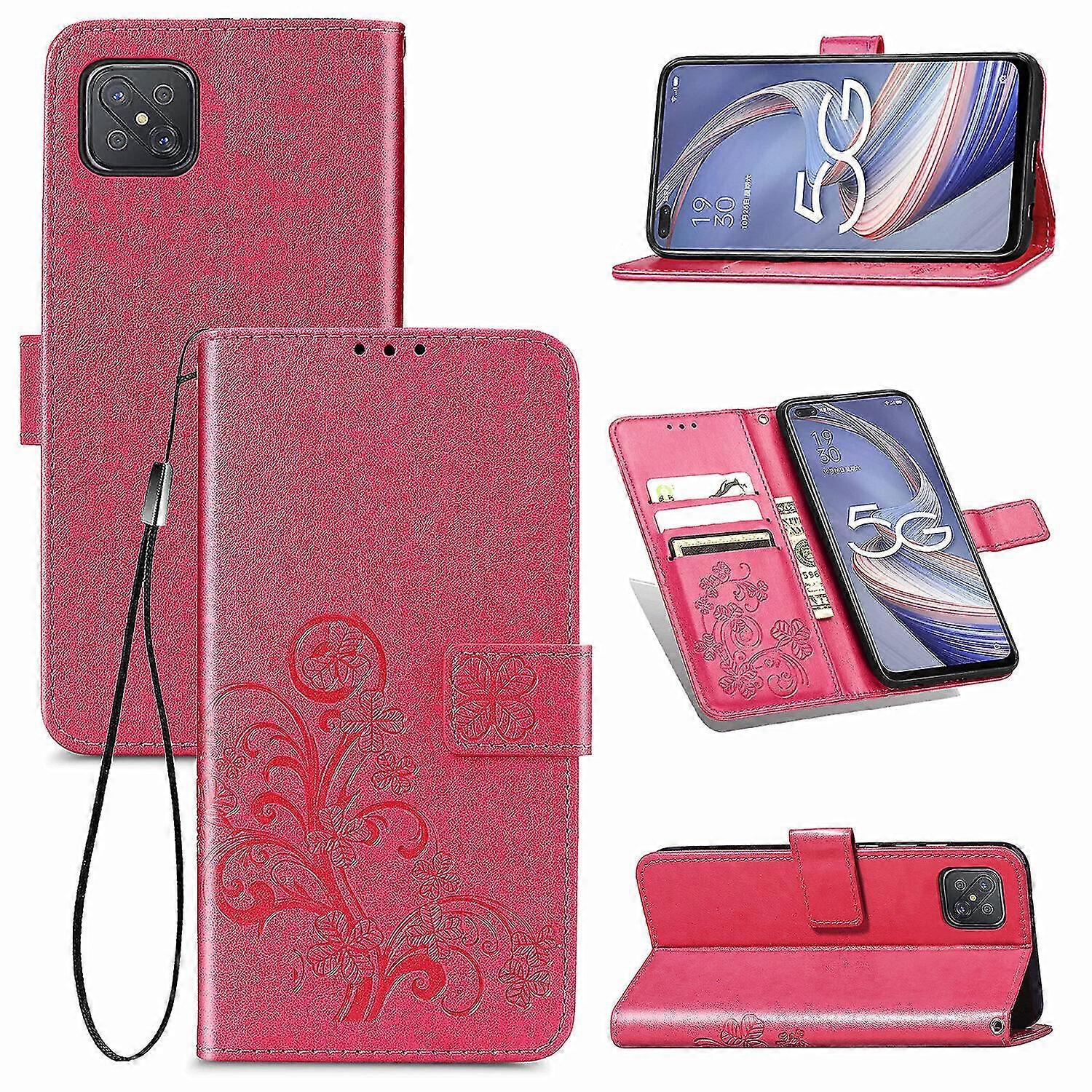 Case For Oppo A92s Cover Wallet Clover Embossed Protective Leather Phone Case - Rose Red