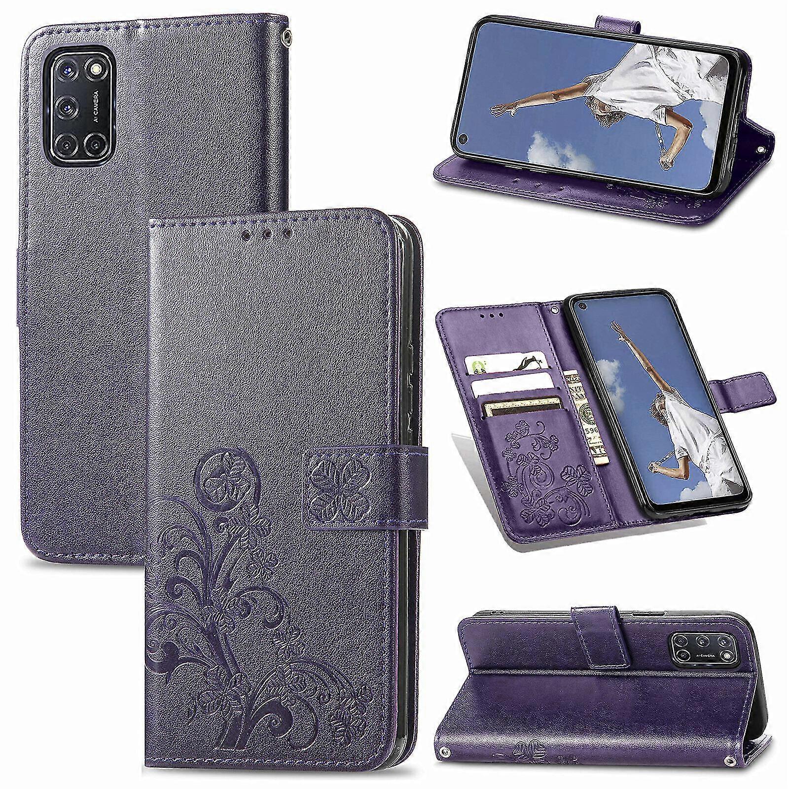 Case For Oppo A52/a72/a92 Cover Wallet Clover Embossed Protective Leather Phone Case - Violet