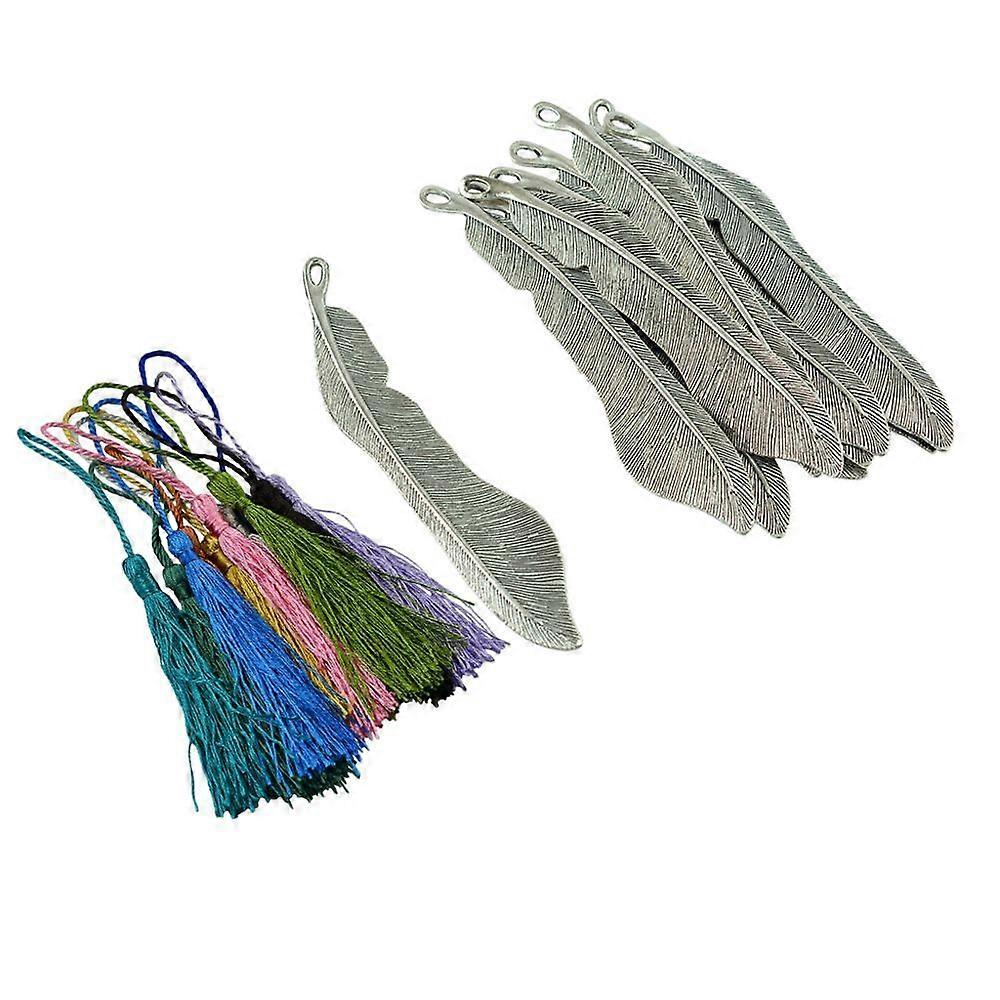 10pcs alloy feather bookmarks and 12pcs bronze tassels