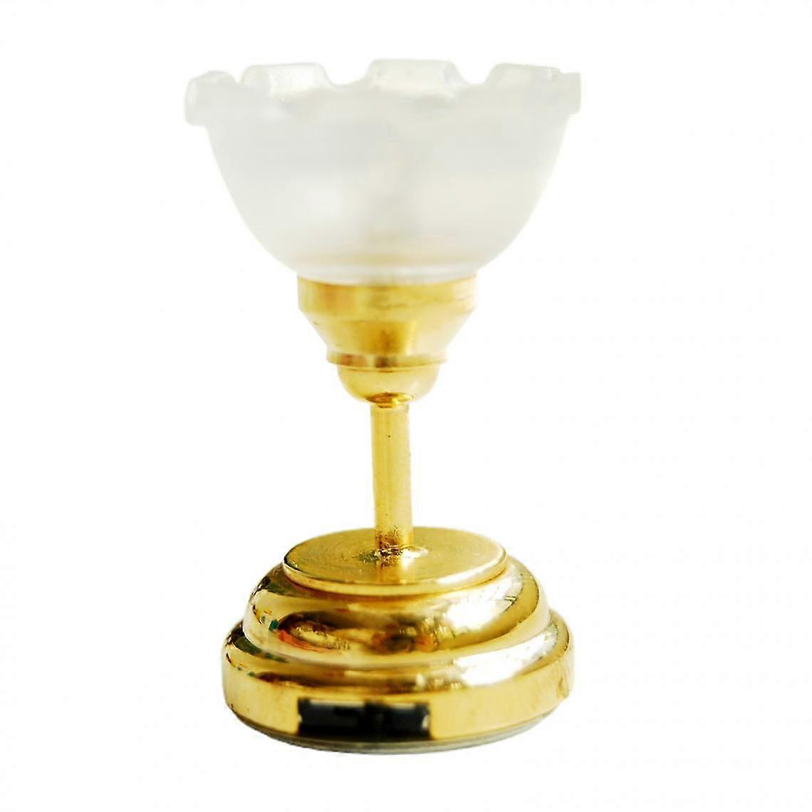 White Lampshade LED Warm Lighting Ceiling Lamp with Switch Battery Operate Home Decorative Furniture-1/12 Dolls House Decor
