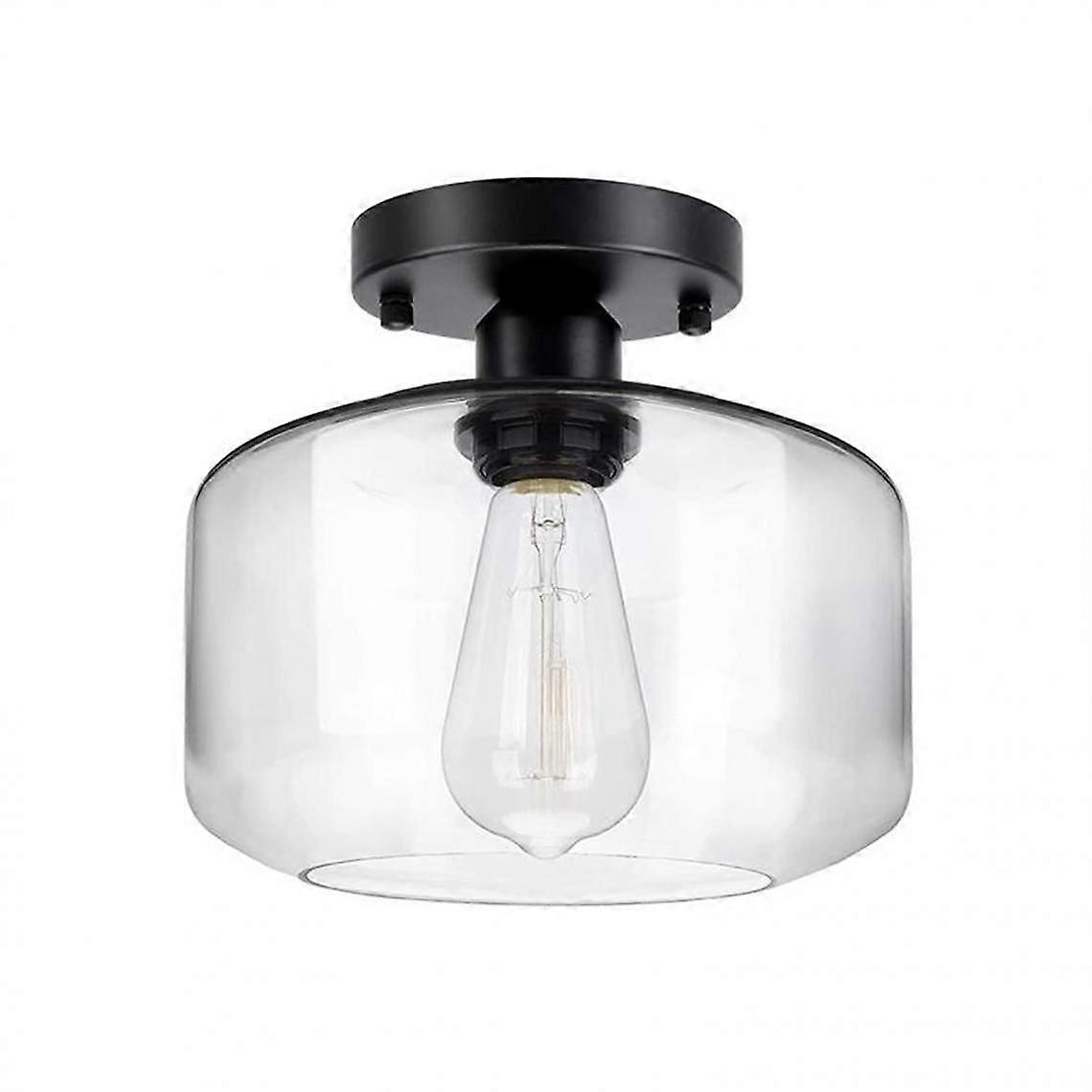Industrial Semi Flush Ceiling Light Glass Shade, Farmhouse Ceiling Light Fixture, Close to Ceiling Lights Black, E27 Base, Bulb Not Included