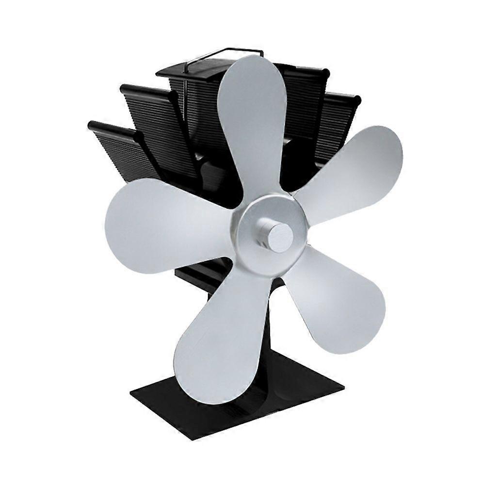 5 Blade Heat Powered Fireplace Fan for Wood/Wood Burner Silver