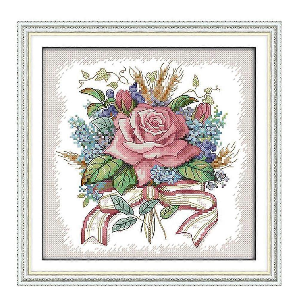 Floral Needlework Cross Stitch Kit DIY Stamped for Beginners 27 x 27cm 14CT