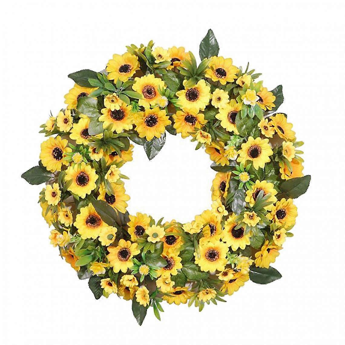 50cm Artificial Sunflower Garland, Decorative Fake Flower Garland with Yellow Sunflower Hanging Wreath for Indoor Home Outdoor