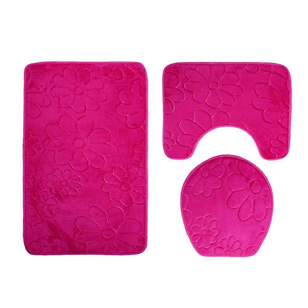 3 Pieces Non-Slip Bath Mat Contoured Toilet Lid Cover Heart Rose Red