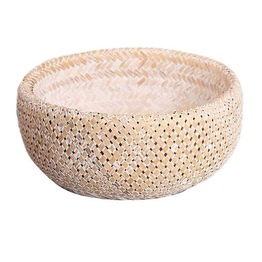 Round Bamboo Weaving Flower Basket Storage Basket for Living Room White-M