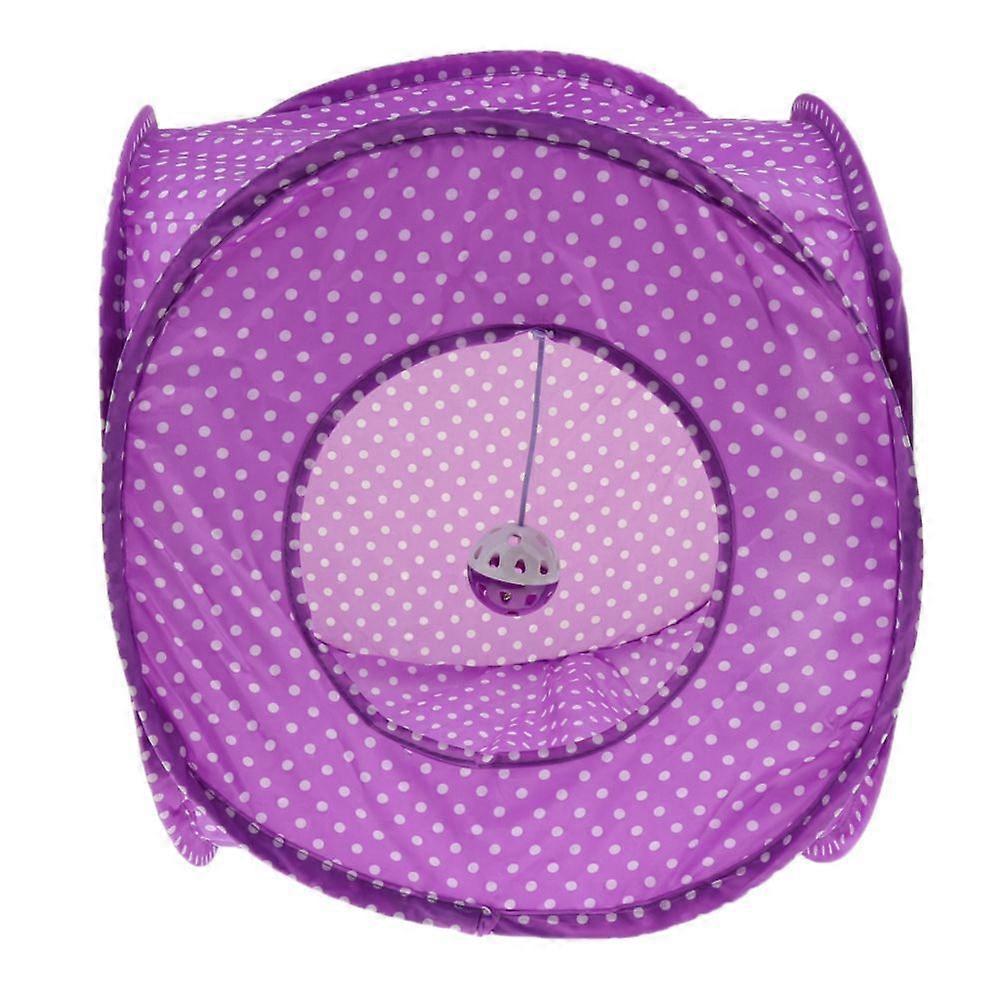 Dog Puppy Cat Tent House Sleeping Bed with Hanging Ball Square Purple