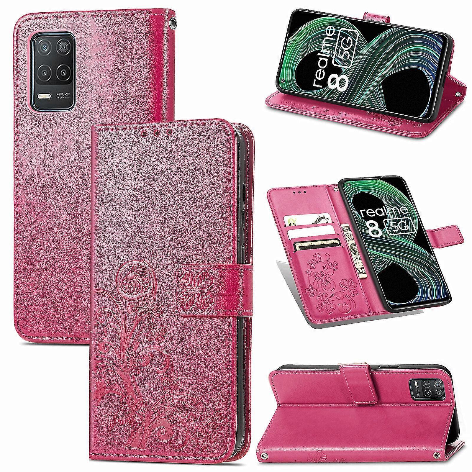 Case For Realme 8 Cover Wallet Clover Embossed Protective Leather Phone Case - Rose Red
