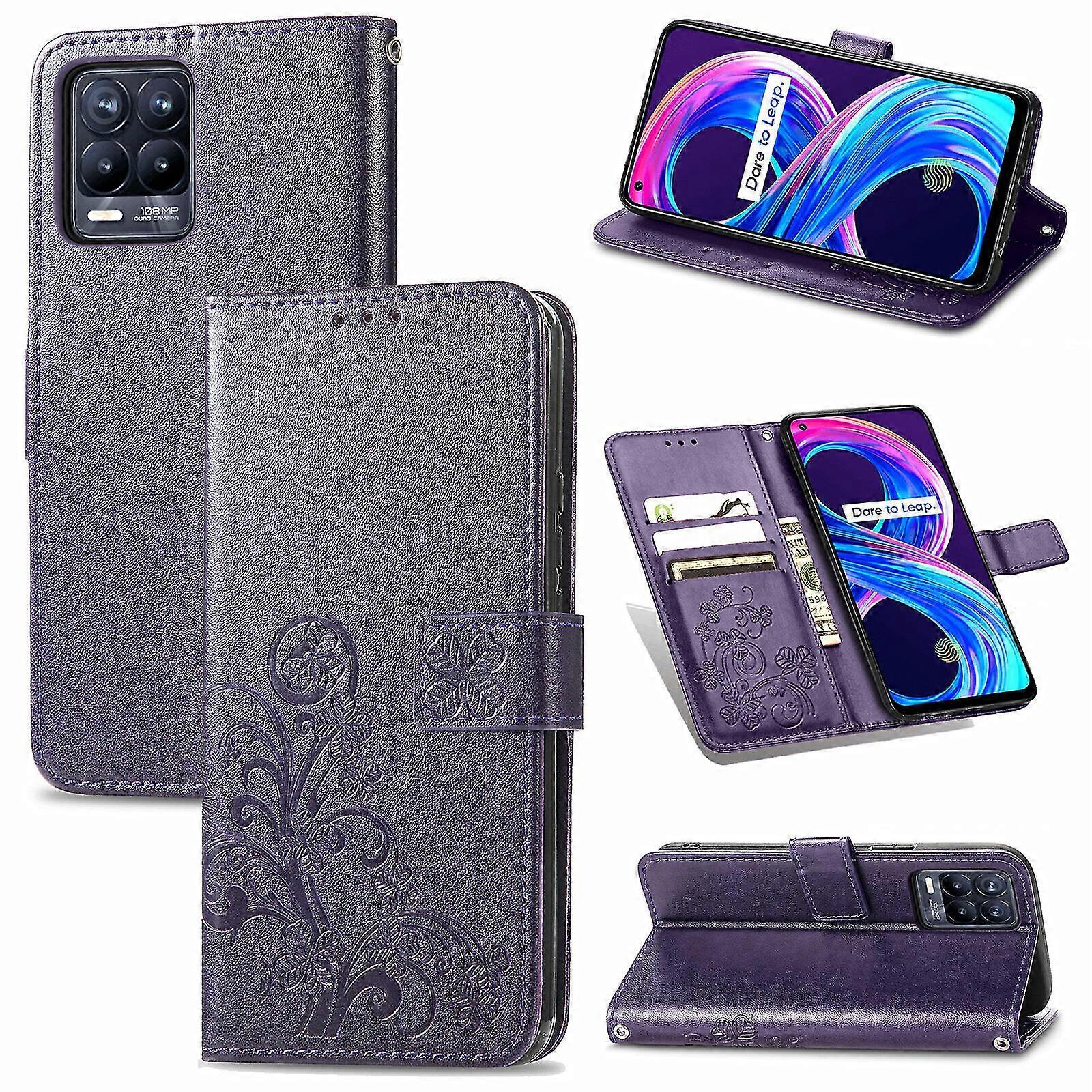 Case For Realme 8 Pro Cover Wallet Clover Embossed Protective Leather Phone Case - Violet