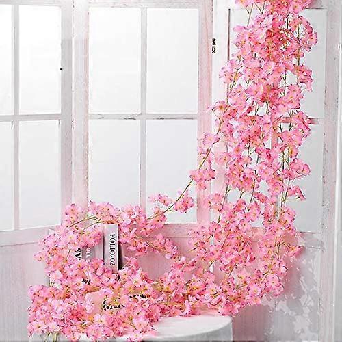 Dww- 2 PCS - Dark Pink 180 cm / 70 Inches Artificial Flower Cherry Blossom Rattan Wedding Cherry Blossom Rattan Chain Hanging Decoration Decorative Fl