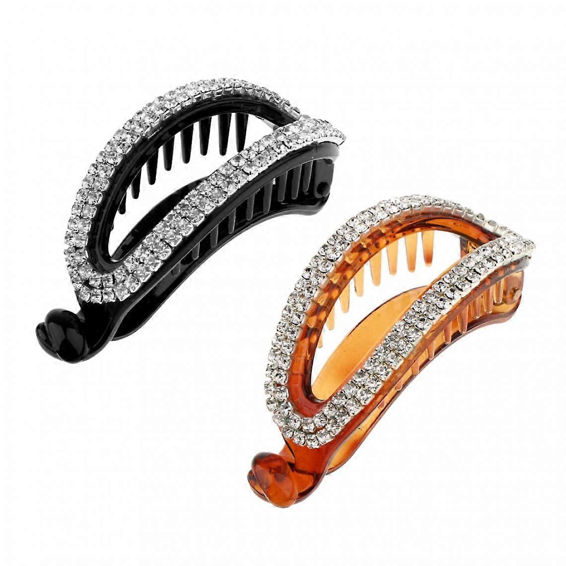 2x Crystal Hair Banana Clip Clamp Double Girls Hair Accessories for Women