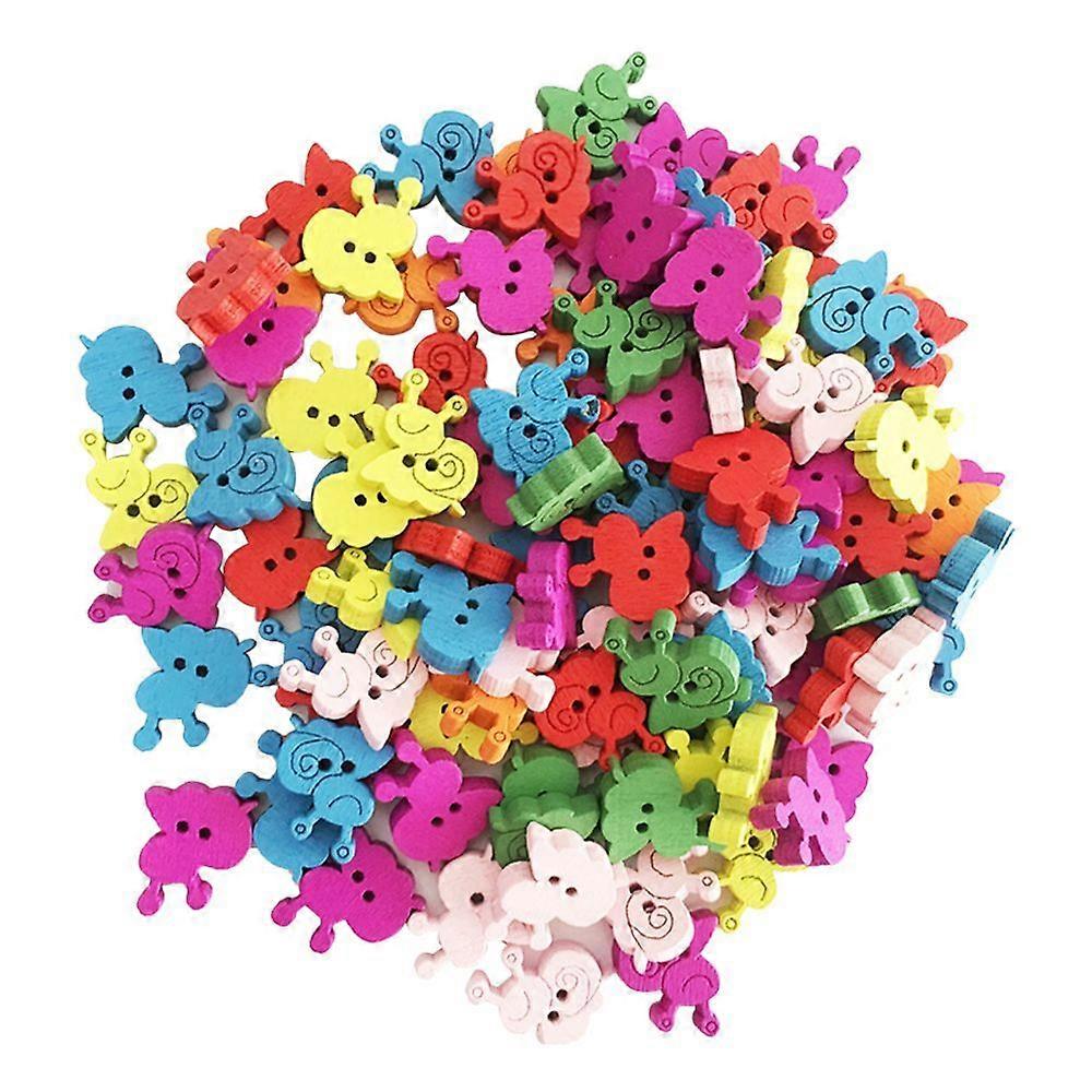 100pcs Colorful Snail Wooden Buttons 2 Holes for DIY Scrapbooking Sewing