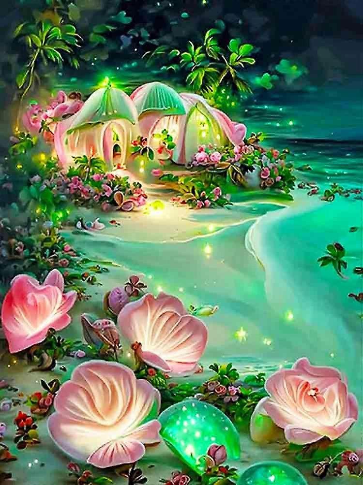 Dww-30 x 40 cm, Fairy Flower Green House Diamond Painting Diamond Embroidery Painting5D Canvas Painting for Children and Adults, Rhinestone Puzzle Set