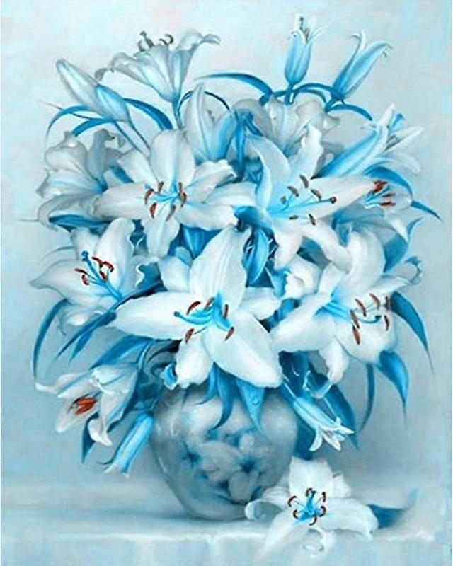 Dww-30 x 40 cm, Blue Lily Diamond Painting Diamond Embroidery Painting5D Canvas Painting for Children and Adults, Rhinestone Puzzle Set, Drawing Wall