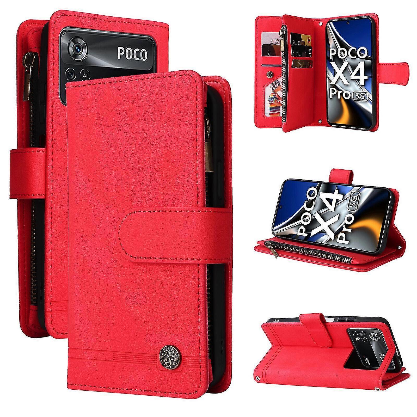 Case For Xiaomi Poco X4 Pro 4g Leather Flip Folio Case With Credit Card Holder Money Pocket Buttons Wallet Case Kickstand Shockproof Protecti