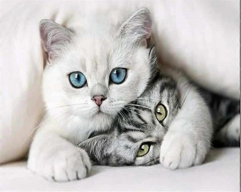 DWW-30 x 40 cm, White Cat and Tabby Cat Diamond Painting Embroidery Diamond Painting5D Canvas Painting for Children and Adults, Rhinestone Puzzle Set,