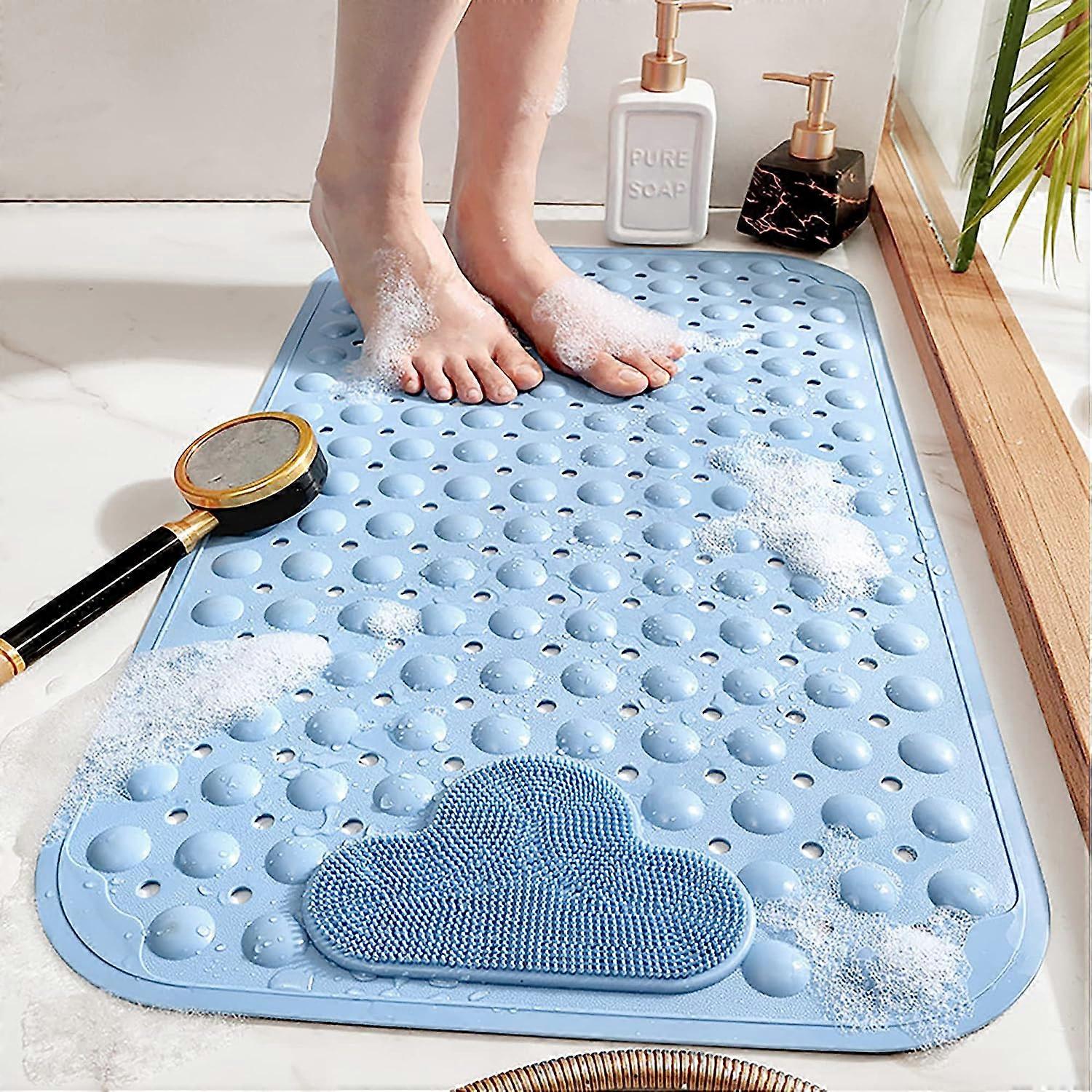 Dww-Non-slip bath mat, shower mat (blue, 40*70cm) with foot massage, eco-friendly PVC anti-mold bath mat, floor massage bath mat with suction cups and