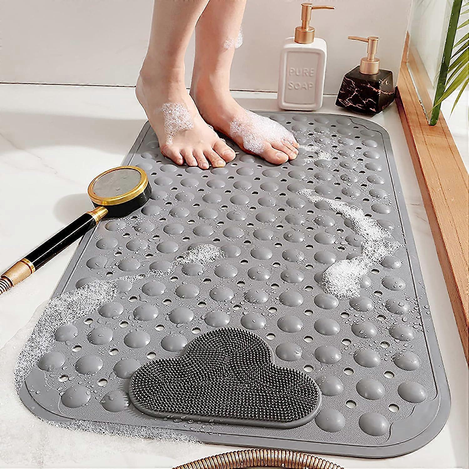 Dww-Non-slip bath mat, shower mat (grey, 40*70cm) with foot massage, eco-friendly PVC anti-mold bath mat, floor massage bath mat with suction cups and