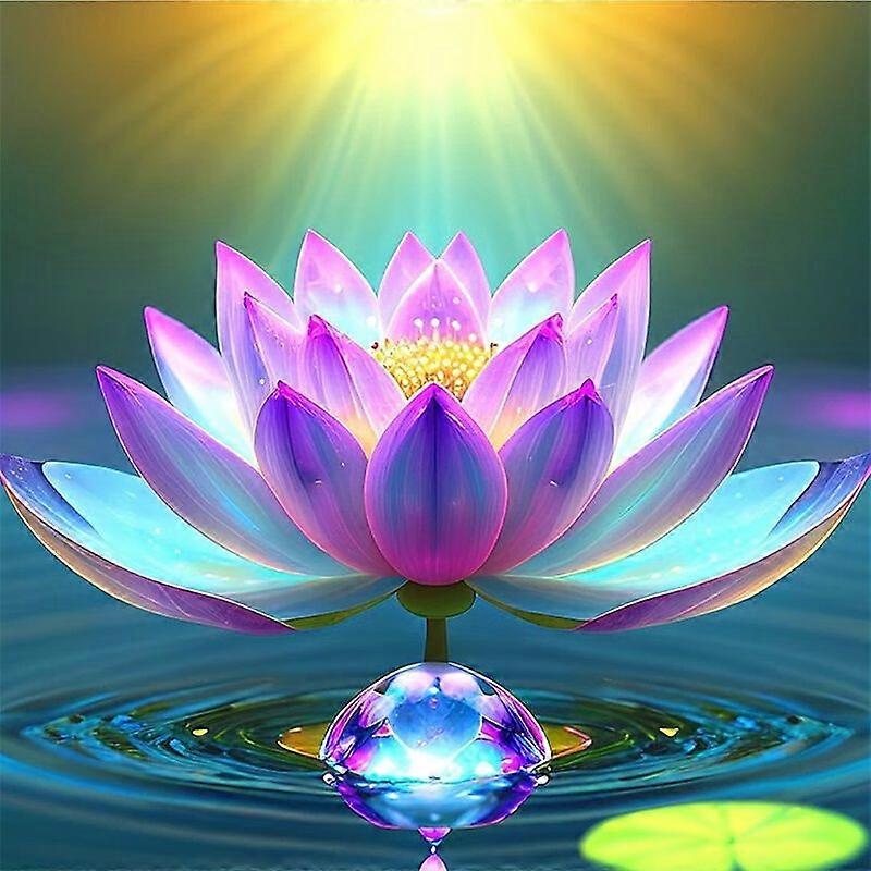 Dww-30 x 40 cm, Lotus in Bloom Diamond Painting Diamond Embroidery Painting5D Canvas Painting for Children and Adults, Rhinestone Puzzle Set, Drawing