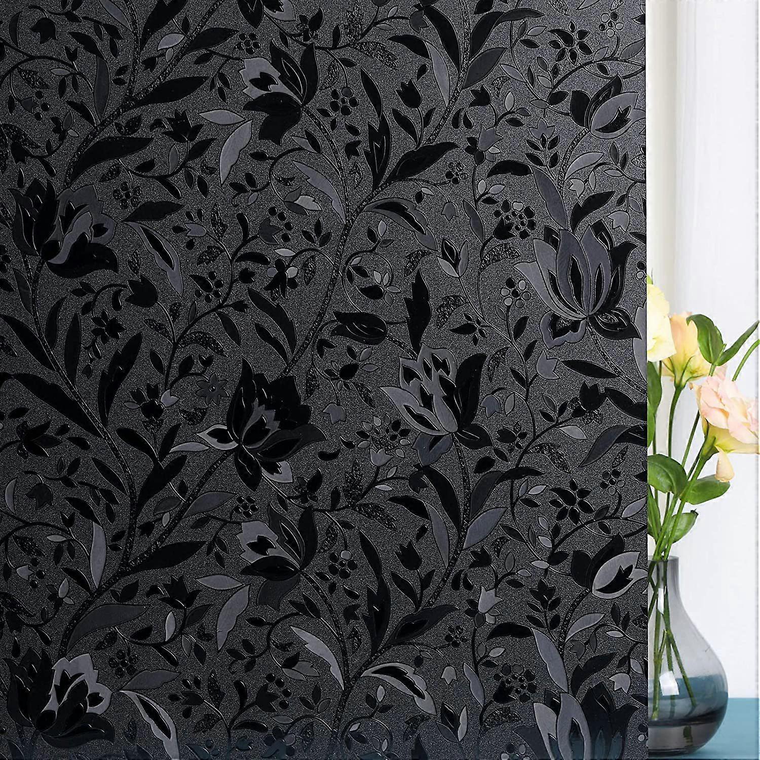 Dww-(Black 45x300cm) Blackout Window Film, Privacy Window Film, Electrostatic Window Film, UV Protection, Frosted Window Film for Office, Home, Bathro