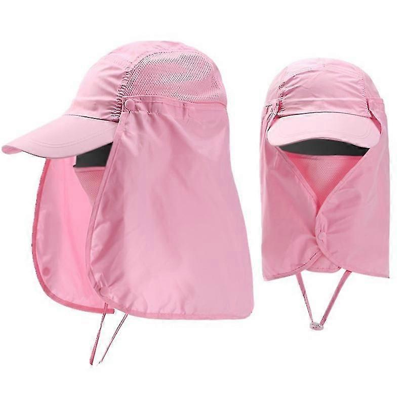 Outdoors Uv Sun Protection Hiking Caps Neck Face Covers Flap Wide Brim Hats Summergray, pink2pcs