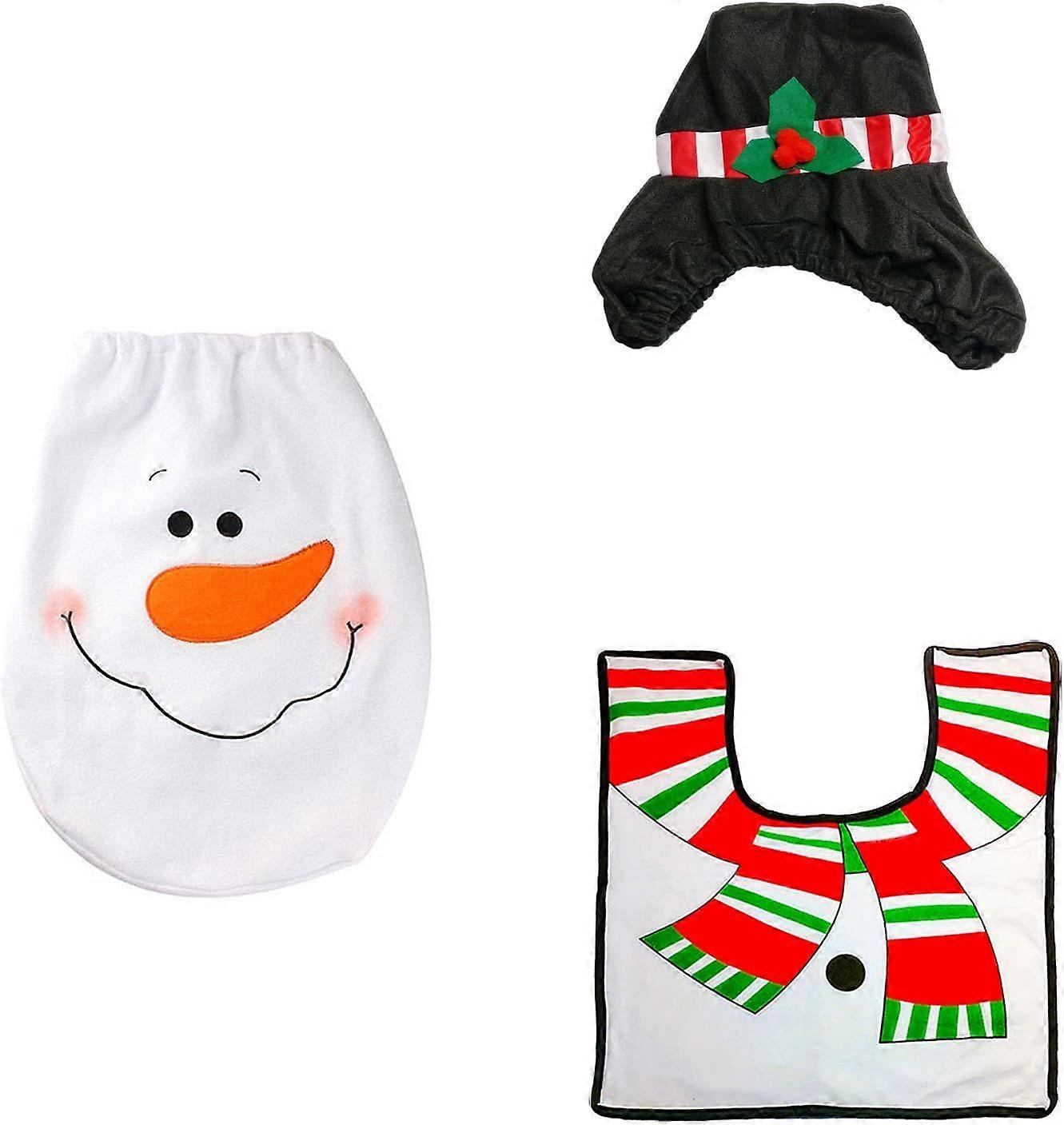 3D Santa's Toilet Seat Cover Set Bathroom Christmas Decorations (Snowman)3pcs