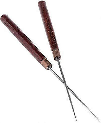 Wooden Handle Awl Leather Craft Sewing Awl DIY Sewing Leather Tools Practical Design and Durable (Brown) (2pcs)