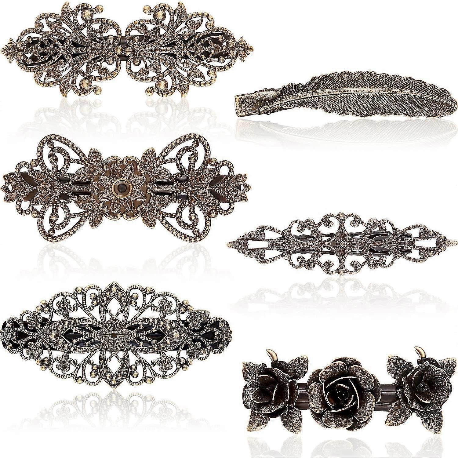 6 Pieces Vintage Hairpin Set Metal Brass Color French Barrettes Retro Flower Hair Clips 2023