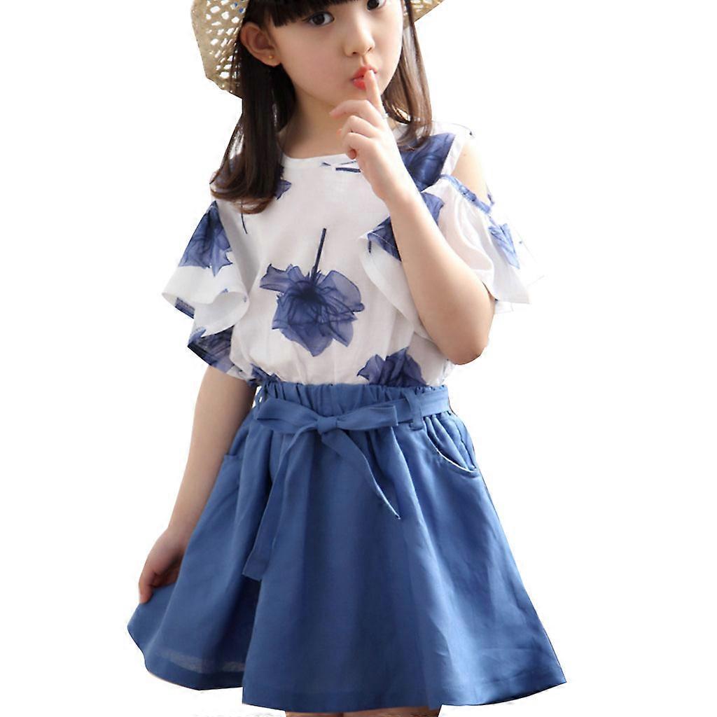 2 Pcs/Set Girls Two Piece Summer Outfits Kids Baby Short Sleeve Round Neck Tops T-shirts + Skirt