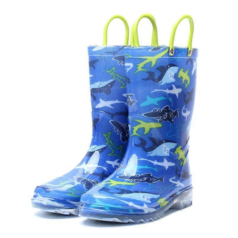 Kids Wellies, Non-Slip Waterproof Shark-Shape Rain Boots with Handle, Wellington Rain Shoes Suitable for Boand Girls(2pcs,blue)
