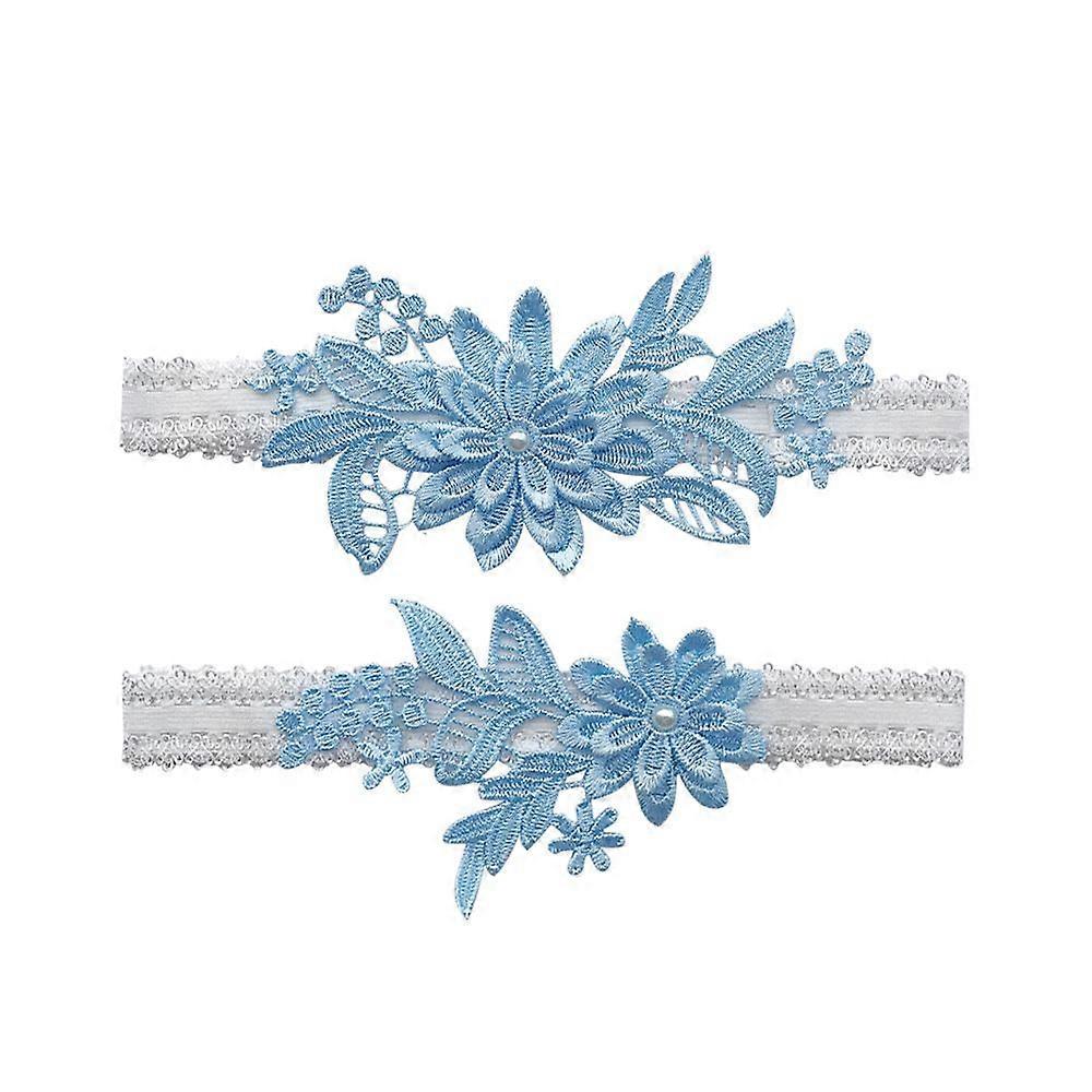 Wedding Garters Set Lace Bridal Garter Stretchy Floral Garter For Bride (2 PCS, blue)